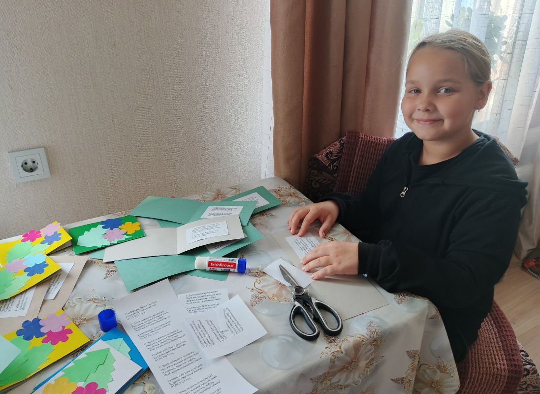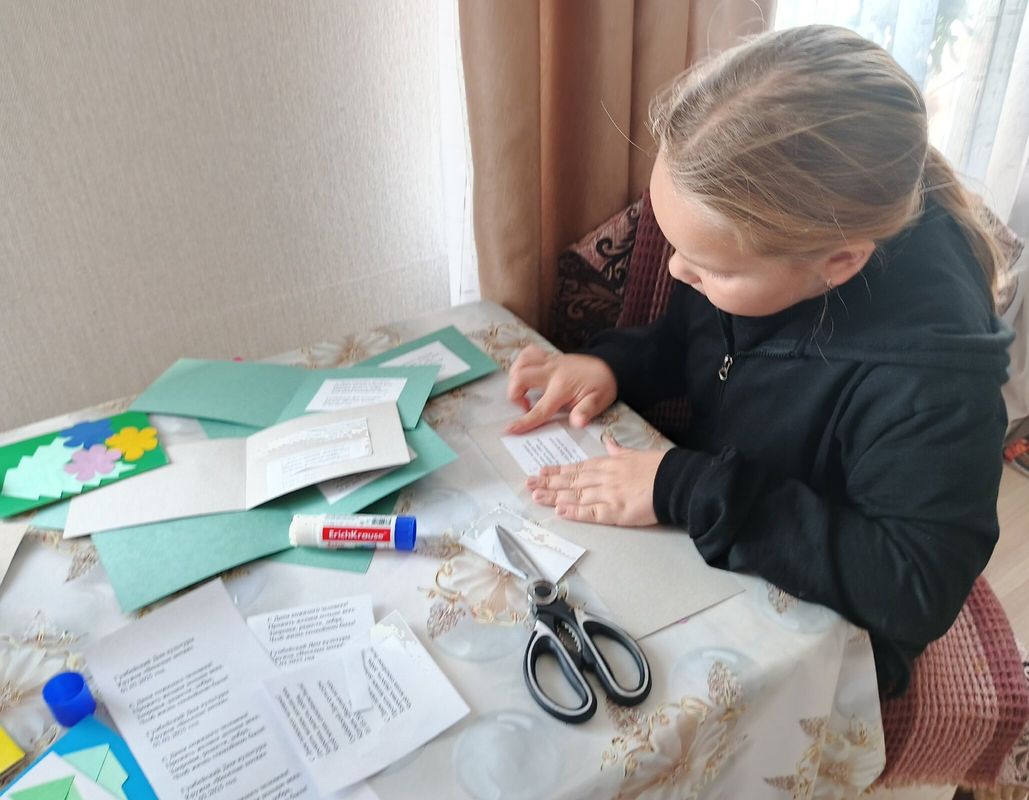 Ребята проявили свою фантазию в изготовлении красивых открыток своими руками с использованием разных техник рисования и аппликации. Кто-то вырезал яркую листву и цветы из цветной бумаги, кто-то придумывал композицию на самой открытке, а кто то придумывал текст поздравления. Каждый вкладывал частичку своей души в эту работу.