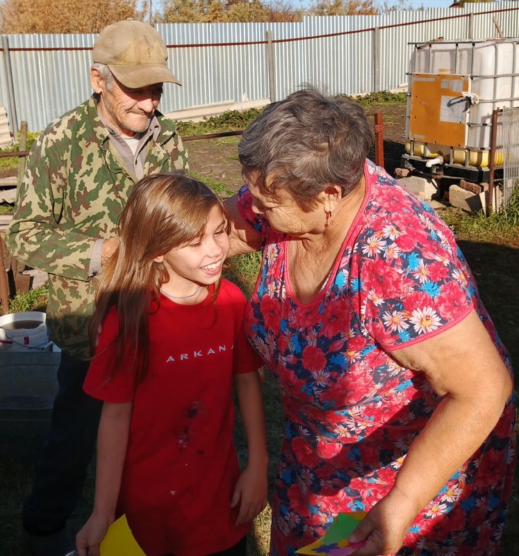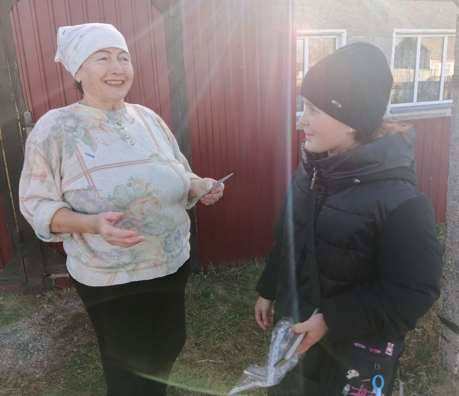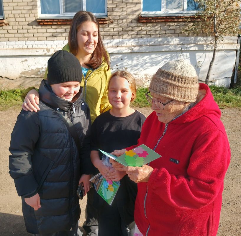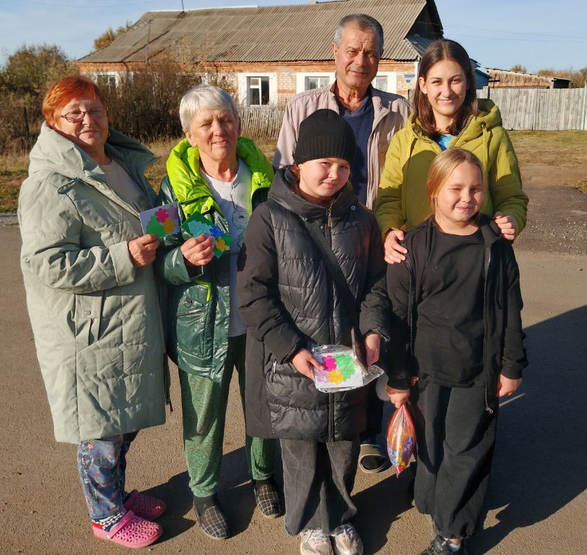 И вот, вооружившись улыбками и хорошим настроением отправились в путь. По всему посёлку звучали детские голоса, наполняя улицы радостью и теплом. Бабушки и дедушки были приятно удивлены таким вниманием и заботой наших ребят.