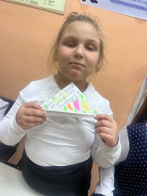 Юные участники мероприятия ознакомились с историей писем-треугольников, которые использовались в годы Великой Отечественной войны. После теоретической части дети приступили к созданию собственных посланий для военнослужащих, участвующих в специальной военной операции. В своих письмах они выразили поддержку и благодарность, стремясь передать солдатам чувство, что их помнят и ждут.