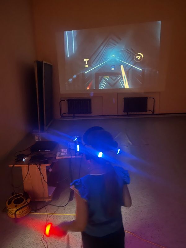 Во время мероприятия дети пользовались игровыми контроллерами, чтобы взаимодействовать с виртуальным окружением. Основное развлечение — разрушение виртуальных кубиков под музыку. Для самых смелых участников была организована виртуальная симуляция аттракциона «американские горки».
