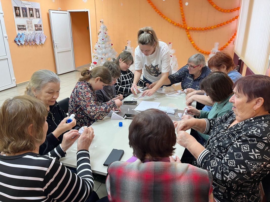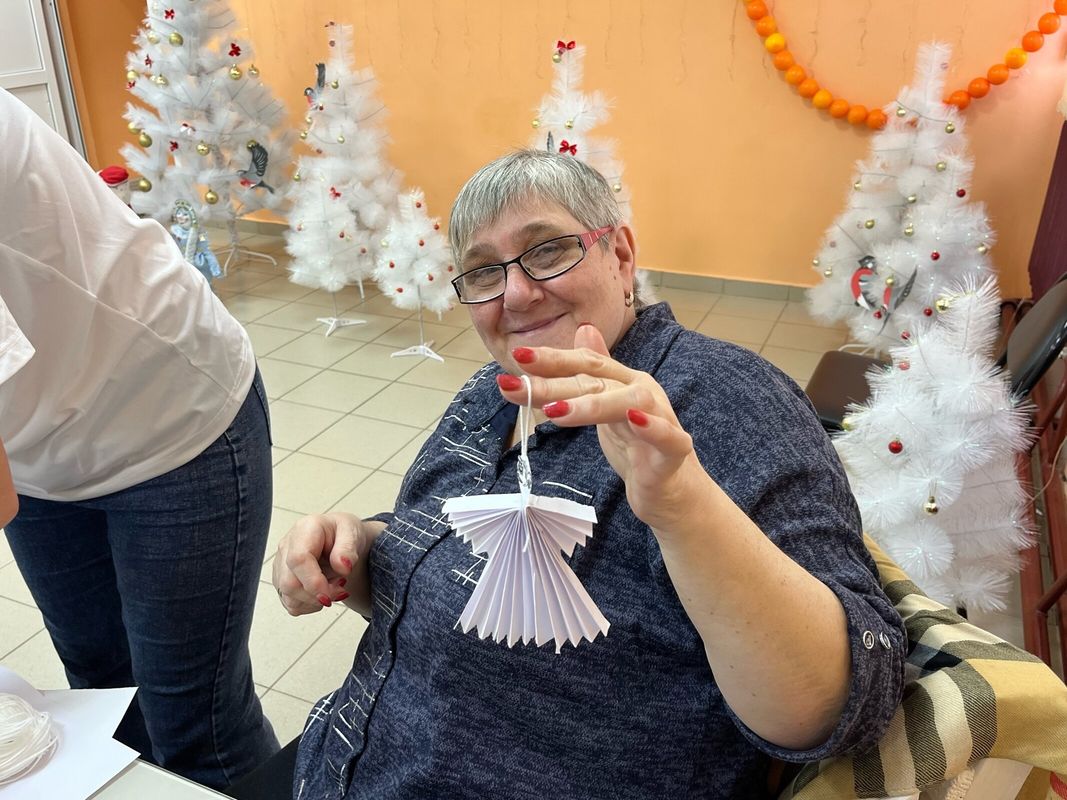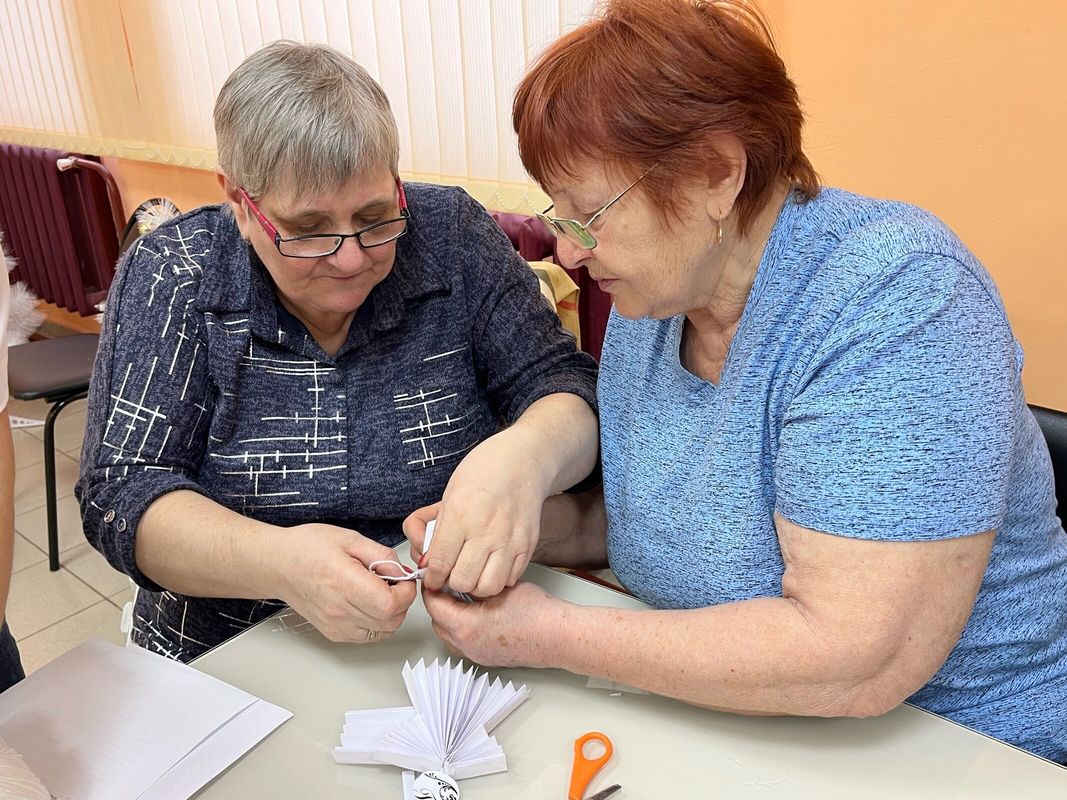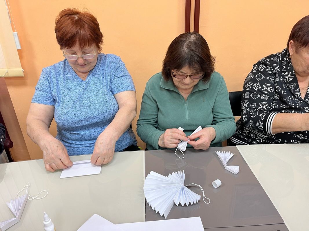 Лилия Орлова рассказала собравшимся историю происхождения рождественского символа и поделилась тонкостями работы с бумагой. Все участники получили необходимые инструменты и инструкции, после чего приступили к творческому процессу.