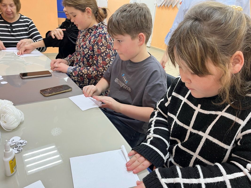 Дети были особенно увлечены созданием бумажных фигурок. Взрослые тоже погрузились в атмосферу творчества, наслаждаясь возможностью создать нечто красивое собственными руками.