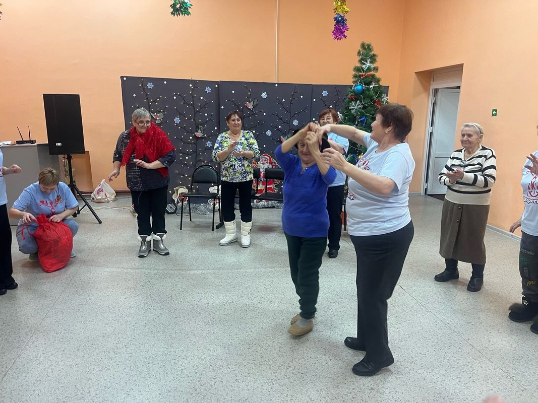 Особое внимание уделили конкурсной программе с новогодними атрибутами и реквизитом. В весёлых конкурсах не смолкали улыбки наших участников. В зале звучали любимые песни прошлых лет, играли знакомые мелодии, под которые танцевали наши гости.
